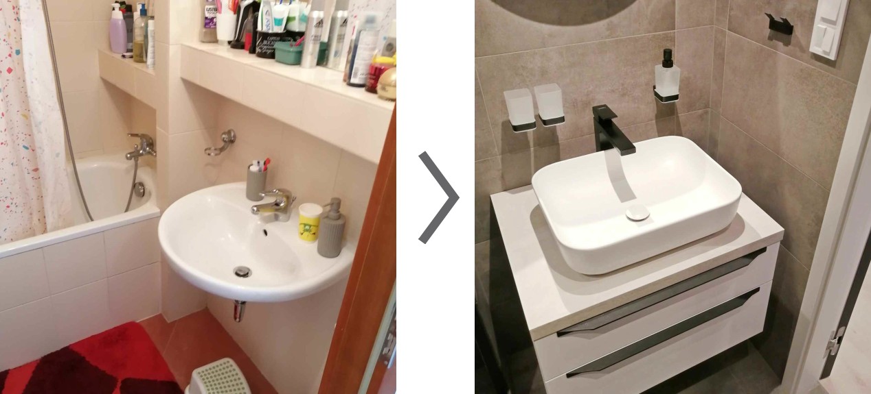 Poměrně veliký byt pro čtyřčlennou rodinu už potřeboval nový kabát. Klient požadoval bílé dveře, černé kliky a decentní obklady a dlažbu. Vše mělo být čisté, nové a praktické. Součástí změny bylo také zazdění průchodu mezi pokoji (vznik dvou dětských pokojíčků) a zvětšení otvoru ve zdi mezi kuchyní a jídelnou (stavební povolení). Součástí návrhu byl i rozkres nábytku na míru - kuchyně, skříně, lavice, koupelnové skříňky atd.