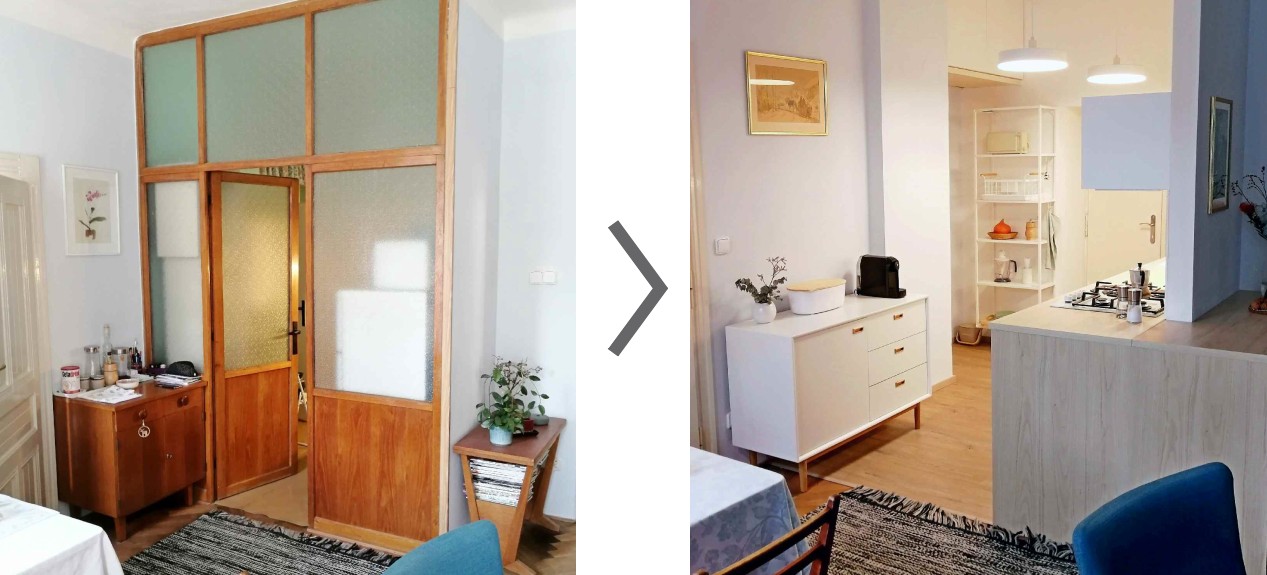 > otevření kuchyně do prostoru