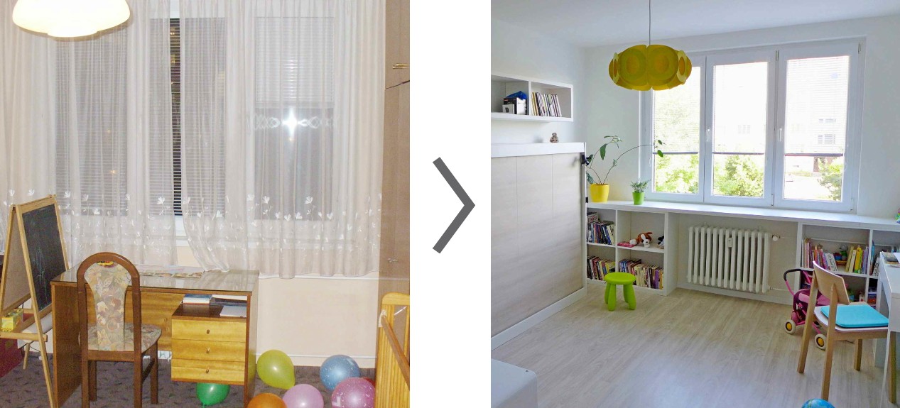 Milý starší manželský pár mě požádal o přetvoření původního dětského pokoje na pokoj pro hosty. Hosty v tomto případě měly být hlavně jejich již dospělé děti s vnoučaty - bydlí v cizině a jezdí do ČR pravidelně navštěvovat své rodiče. Pro manžele jsem již dříve navrhovala a realizovala kuchyni na míru včetně jejího propojení s obývací částí (zajištění stavebního řízení). V této zakázce jsem ale od klientů měla méně svázané ruce a mohla si s návrhem více pohrát.